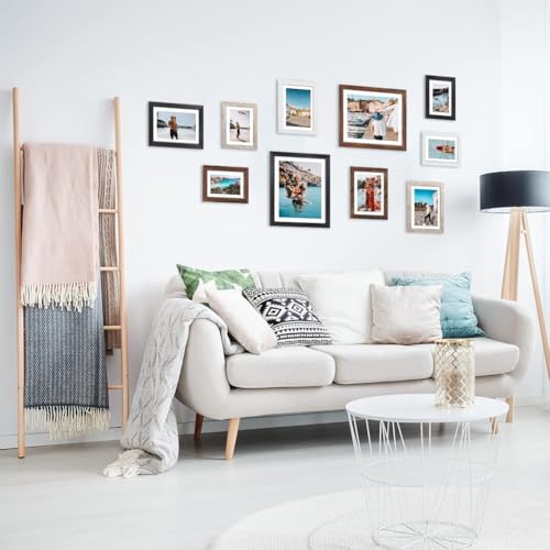 Imagine transforming a blank wall into a stunning gallery showcasing your most treasured memories. With two 8x10, four 5x7, and four 4x6 frames, you can mix and match your favourite family photos, holiday snapshots, or artistic paintings. The sleek design, featuring white mats, adds a professional touch, ensuring your images are the focal point.