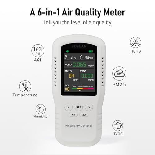 In today's world, maintaining a healthy indoor environment is more crucial than ever. The GLXY 6-in-1 Air Quality Monitor offers an effective solution for monitoring the air quality in your home, office, or school. With its advanced sensors, this device provides real-time data on five key pollutants, including Formaldehyde (HCHO), Volatile Organic Compounds (TVOC), and PM2.5 particulate matter, along with temperature and humidity levels.