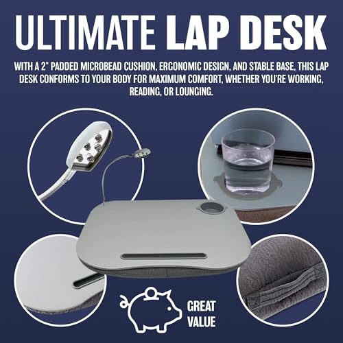 Transform your work and leisure with the grey portable cushioned laptop tray designed for comfort and convenience.