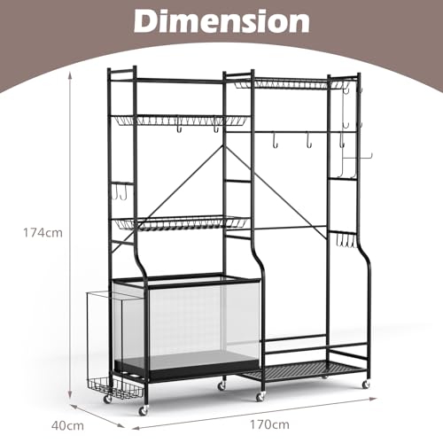The thoughtful design goes beyond just storing; it ensures that your equipment is secure with anti-falling baffles on the shelves and offers additional hanging options with removable hooks. The all-metal construction guarantees that this organiser is built to last, while the powder-coated finish prevents rust, providing you with a reliable storage solution for years to come.
