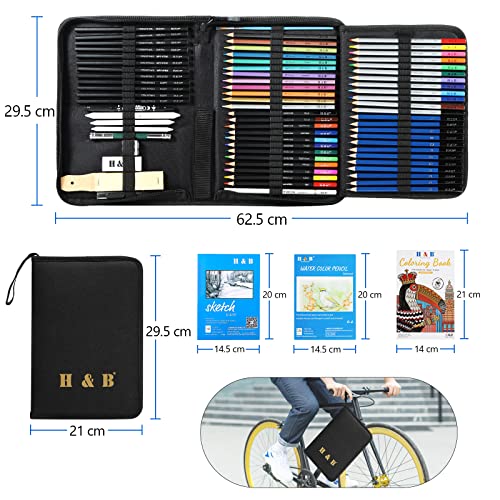H & B 75Pcs Drawing Set Colouring Pencils Sketch Set,Drawing Pencils with Watercolor Pencil,Metallic Pencil, Sketchbook,Art Supplies for Adults Artists Beginners