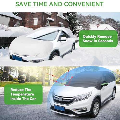 - Discover the ultimate solution for protecting your vehicle with the Ninonly Half Car Cover Waterproof. Designed to offer an expansive coverage area, this innovative cover not only shields your front and rear windshields but also safeguards your wipers and roof from harsh weather conditions. Whether it's blazing sunshine, pouring rain, or heavy snow, the Ninonly cover ensures your car remains in top condition, extending its lifespan and reducing the need for frequent cleanings. Available for both SUVs and sedans, be sure to verify your car's dimensions before making your purchase to guarantee the perfect fit.
