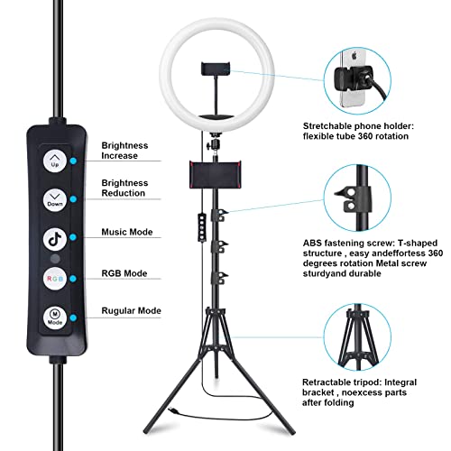 The ring light's Music Rhythm Mode adds a fun twist, synchronising its RGB lighting effects to your chosen soundtrack, ideal for parties or vibrant live events. Moreover, with three colour temperatures and 12 brightness levels, you have complete control over your lighting, ensuring your content looks its best no matter the setting.