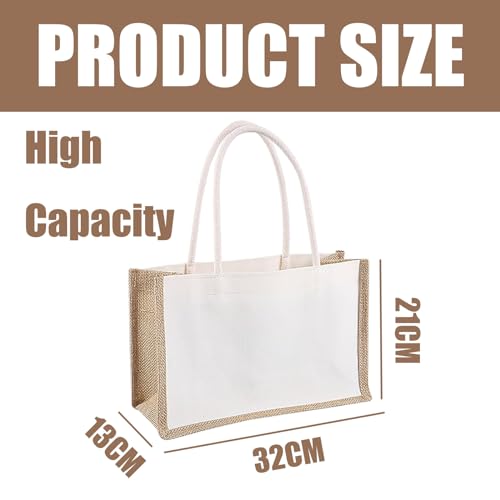 Hessian Bags Shopping Bags Tote Beach Bags Natural Reusable Jute Sacks Burlap Jute Tote Bags with Cotton Handles Reusable Shopping Grocery Bag for Picnic Travel Shopping Beach And Daily Life