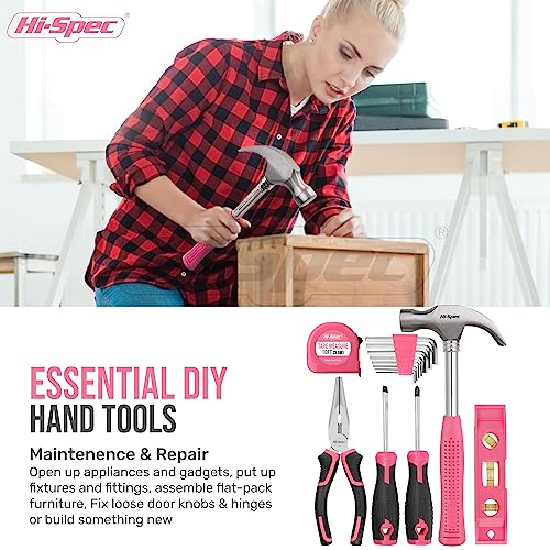Are you tired of struggling with home repairs or DIY projects? Look no further than the Hi-Spec 57pc Pink Hand Tool Kit Set! This versatile toolkit is tailored for anyone from novice DIYers to experienced handymen. It includes everything you need to tackle a range of projects, all neatly organised in a stylish pink toolbox.