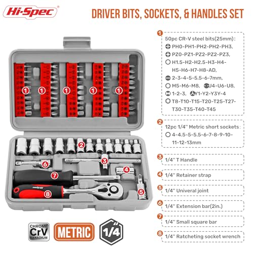 The standout feature of this kit is its impressive selection of 69 screwdriver bits and 1/4" drive metric sockets, ensuring you have the right tool for every task. The ratcheting wrench handle, with its 72-tooth mechanism, allows for effortless tightening and loosening, even in tight spaces.