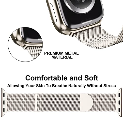 Higgs Upgraded Strap Compatible with Apple Watch Straps 10 42mm 41mm 40mm 38mm Women Men, Dual Magnetic Adjustable Replacement Band for iWatch Series 9 8 7 6 5 4 3 2 1 SE,Fashion Metal Strap Starlight
