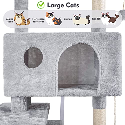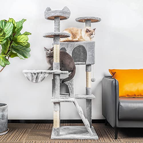 HOMIDEC Cat Tree, 151cm Cat Scratching Post Stable Cat Tower for Indoor Cat, Activity Centre Cat Climbing Tree with 2 Cat Houses, Hammock, 4 Sisal Posts, Ladder, and Rest Place