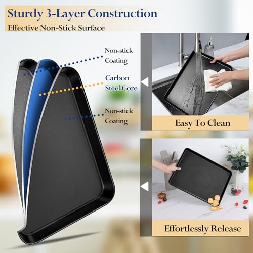 Crafted from durable carbon steel with a non-stick coating, these trays promise healthy baking without leaching harmful substances into your food. Their thoughtful design, including smooth rolled rims and deep, spill-proof sides, means you can bake with confidence, knowing cleanup will be a breeze!