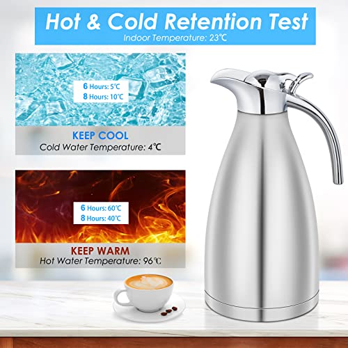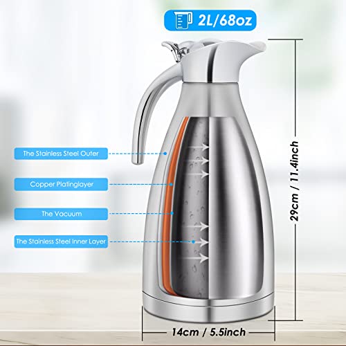2 Liter Stainless Steel Thermal Carafe, Insulated Teapot for Keeping Juice/Milk/Tea/Coffee