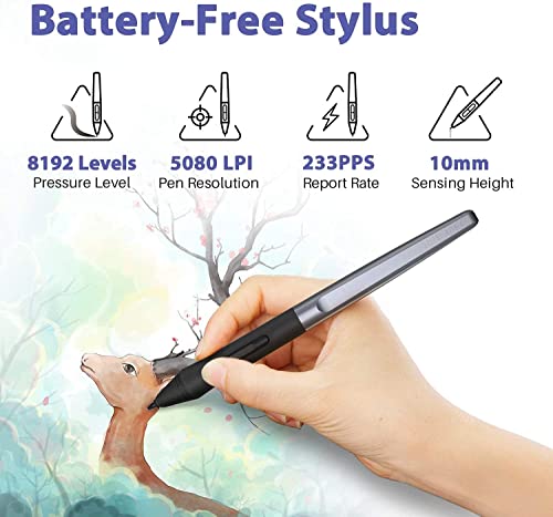 The standout feature of the H1060P is its battery-free stylus, which allows for effortless drawing without the need for constant recharging. With impressive pressure sensitivity levels and a responsive reporting rate, you can create stunning artwork that captures every detail and nuance. Plus, the customisable shortcut keys help streamline your creative process, ensuring you spend more time creating and less time navigating menus.