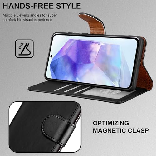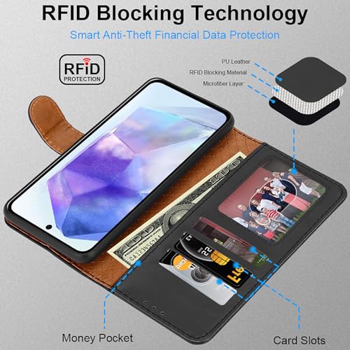iCatchy for Samsung Galaxy A55 Case Leather Wallet Book Flip Stand View Magnetic Protect RFID Blocking Shockproof Cover compatible with Samsung A55 5G Phone (Black)