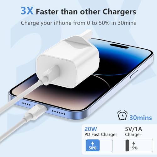 Using PD 3.0 technology, this charger can charge your iPhone to 60% in approximately just 25 minutes, making it three times faster than a standard 5W charger.