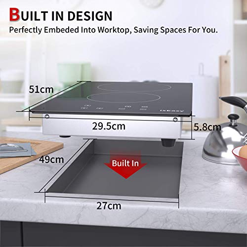 IsEasy Electric Ceramic Hob with Plug-in, Built-in & Portable Cooktop, 30cm 2 Zones 3000W