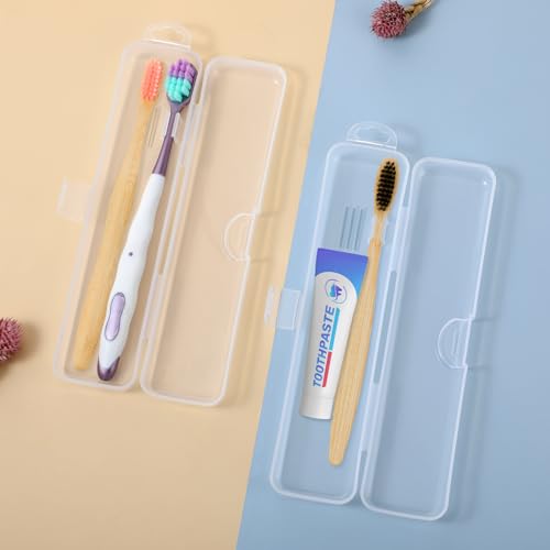 Jeffdad 2 Packs Travel Size Toothbrush Case, Plastic Toothbrush Travel Holder for Manual Toothbrushes, Transparent Containers for Toothbrush Covers and Toothpaste Storage