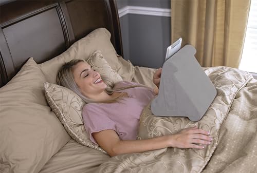 JML Pill-O-Pad Tablet Stand - Tri-Ledge, Lap Mounted, Soft Tablet Holder with Side Pocket - Compatible with iPad, Kindle and More, Sturdy and Lightweight, for Women & Men - Dark Grey