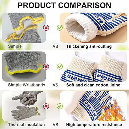 Oven Glove EN407 Certified 932 °F Oven Gloves Kitchen Microwave Heat Resistant Oven Gloves Five Finger Non-Slip Silicone Oven Gloves for Handling Hot Surfaces Cooking Baking and Fireplace Grilling