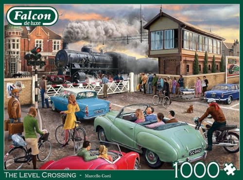 If you’re on the hunt for a delightful and challenging jigsaw puzzle, look no further than the Jumbo Falcon de luxe Level Crossing 1000-piece puzzle. This charming piece features a beautifully illustrated scene by Marcello Corti, capturing the anticipation of a steam train passing through a level crossing.
