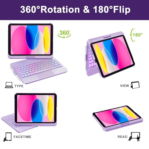 KBCASE Keyboard Case for iPad 10th Generation Case with Keyboard 360° Rotatable Bluetooth Keyboard Case with Trackpad for iPad 10th Generation(A2757/A2777/A2696) 10.9" 2022,7 Backlit,UK Layout