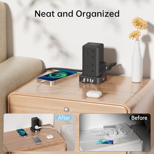 Safety is a top priority, which is why Kemelo has engineered this extension lead with fire-resistant materials and built-in surge protection to safeguard your devices. Whether you're working from home, preparing dinner in the kitchen, or unwinding in your living room, the Kemelo Tower Extension Lead provides the peace of mind you deserve.