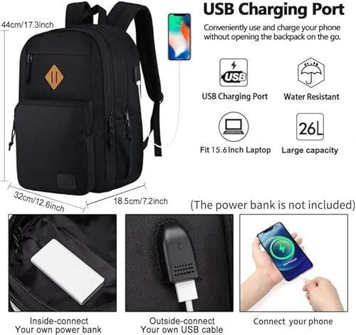 KEOFID Classic Travel backpack for Men and Women, Anti theft Laptop backpack with USB Charging Port for College, Business(Black)
