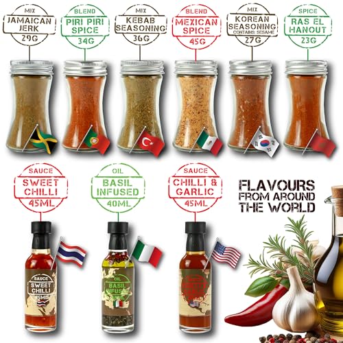 If you’re looking to spice up your cooking repertoire, the Kimm & Miller Around The World Seasoning Set is your passport to global flavours right from your kitchen. With an array of 9 unique sauces, oils, herbs, and spices, this set invites you to embark on a culinary journey that spans continents. Each jar contains authentic ingredients inspired by traditional recipes, allowing you to create mouth-watering dishes like fragrant Moroccan lamb tagine or zesty Jamaican-style jerk chicken with ease.