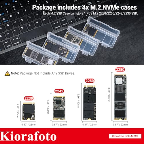Are you tired of dealing with disorganised and unprotected SSDs? The Kiorafoto M.2 SSD cases offer the perfect solution for tech enthusiasts and professionals alike. With four clear cases included, you can store your M.2 2280, 2260, 2242, and 2230 SSDs with confidence.