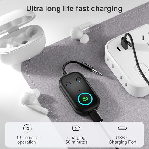 With a quick charge time of just 50 minutes and an impressive battery life of up to 16 hours, this Bluetooth adapter is designed for those on the go. Its compact size makes it easy to slip into your bag, so you can take it anywhere.