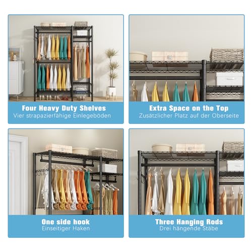 Are you struggling with clutter in your home? The KZOBYD Heavy Duty Clothes Rail Rack is here to help you regain control over your space! This exceptional garment rack not only provides ample storage with its adjustable shelves and three hanging rods but also adds a touch of modern style to any room.