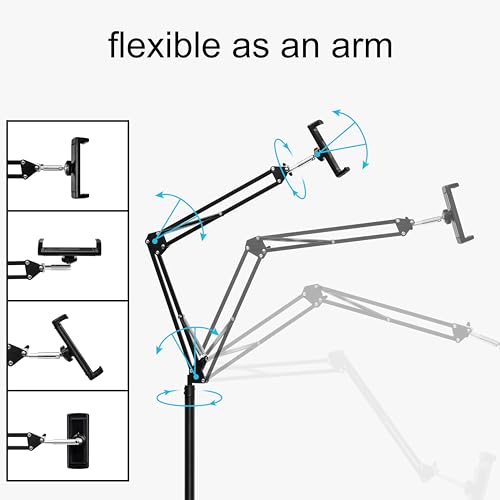 The standout feature of this tablet stand is its incredible flexibility. With 5-axis movement and a full 360° rotation, you can adjust the height from 27.5 to 55 inches to find the ideal viewing angle for any situation. Imagine reading sheet music while playing an instrument or catching up on your favourite series without the strain of holding your device.