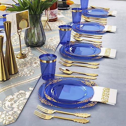 Imagine hosting a birthday party or a wedding anniversary celebration and having everything you need, from dinner plates to utensils, beautifully arranged on your table. The stunning blue and gold rim design not only enhances your décor but also sets the mood for a sophisticated dining experience.