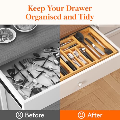 Don’t let clutter take over your kitchen—invest in the Lifewit Bamboo Extra-Large Cutlery Drawer Organiser today and enjoy a more organised, stylish space!