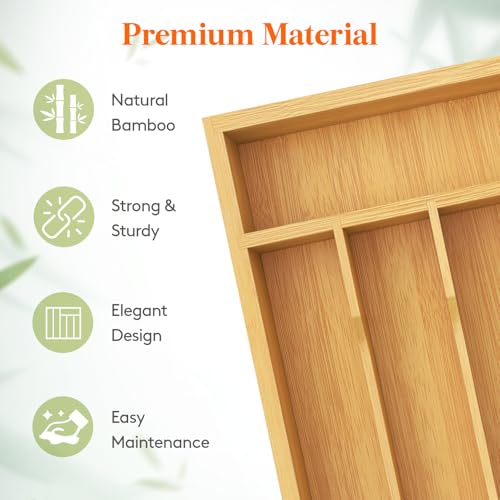 Are you tired of rummaging through cluttered kitchen drawers every time you need a utensil? The Lifewit Cutlery Drawer Organiser is here to save the day! This elegant, multi-functional bamboo tray not only helps you keep your cutlery neatly organised but also adds a touch of sophistication to your kitchen décor. With five spacious compartments, you can easily categorise your knives, forks, spoons, and even other household items like stationery or jewellery.