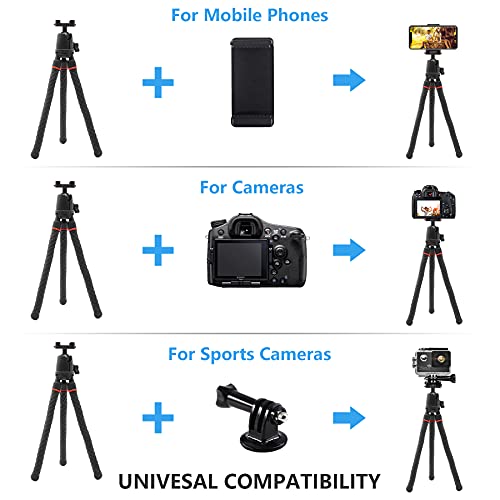 This tripod’s wide compatibility is a standout feature, designed to accommodate various devices including the latest iPhones and DSLRs. Its adjustable phone clip ensures a snug fit for smartphones, while the standard 1/4" screw allows for easy attachment of cameras.