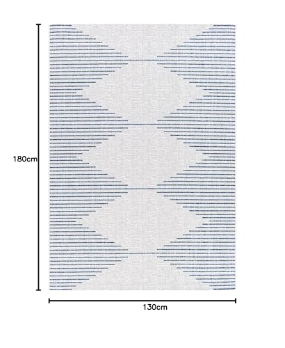 With its beautiful blue, navy, and ivory colour palette and geometric patterns, this rug seamlessly blends with any decor style, whether you prefer a modern or bohemian look. Imagine hosting summer barbecues or enjoying a quiet evening under the stars, all while your feet rest on the soft, inviting surface of this exquisite rug.