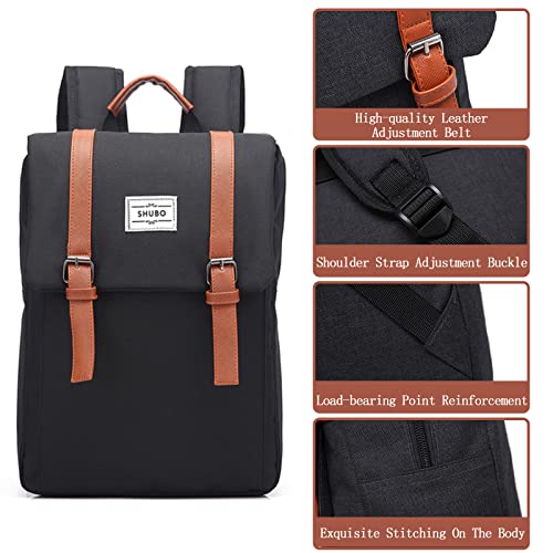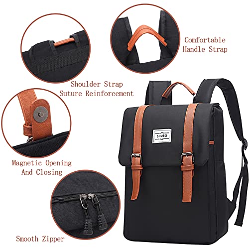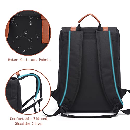 Lizbin Vintage Laptop Backpack for Women, Slim Laptop Backpack for Men, College Backpack, Water Resistant Travelling Backpack, Fashion Business Bag, Casual Daypack, Fits 15.6Inch Notebook (Black)