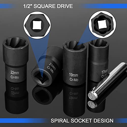 What sets this set apart is its versatility. With four different sizes (17mm, 19mm, 21mm, and 22mm), you can easily find the right fit for your needs. Additionally, the included Drift Punch Bar simplifies the process of removing nuts from the sockets, making your task smoother and quicker.