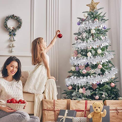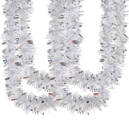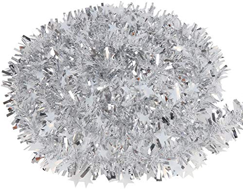 Imagine wrapping this shimmering silver garland around your banisters or cascading it down the steps for a dramatic effect that will wow your guests. Its generous length of 10 metres means you can decorate large areas without missing a beat. Plus, the charming stars interspersed among the tinsel add a whimsical touch perfect for the festive season.