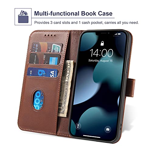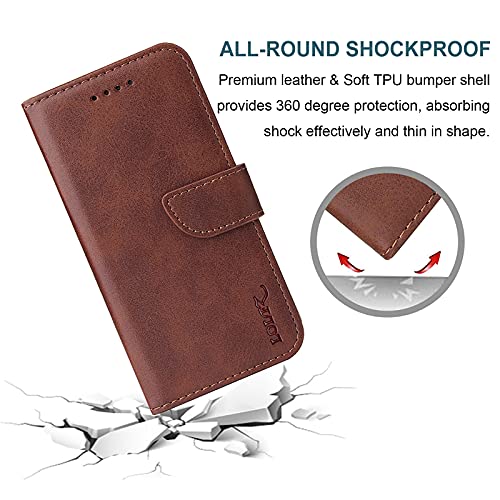 LOLFZ Wallet Case for iPhone 13, Vintage Leather Book Case with Card Holder Kickstand Magnetic Closure Flip Case Cover for iPhone 13 - Coffee Brown