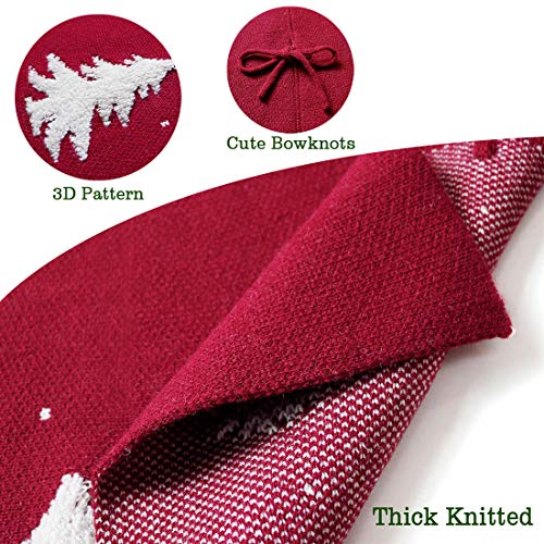 LOMOHOO Christmas Tree Skirt 36inch Large Red Christmas Tree Skirt,Rustic Thick Knit Tree Skirt With 3D Elk Snowflakes Xmas Tree Base Cover Mat for Holiday Party Decorations