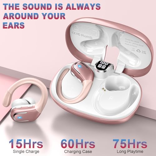 Wireless Earbuds, Bluetooth 5.3 Headphones Wireless with CVC8.0 Noise Cancelling Mic, IP7 Waterproof Wireless Earphones Running Stereo, 75H Bluetooth Sport Ear buds Earhooks for iOS/Android, Rose Gold