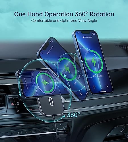 Magnetic Wireless Mobile Phone Holder Car Charger Compatible with MagSafe Car Holder Quick Charger Wireless Charger Car 360° Rotatable for Air Outlet Compatible for iPhone 13/12 Pro Max