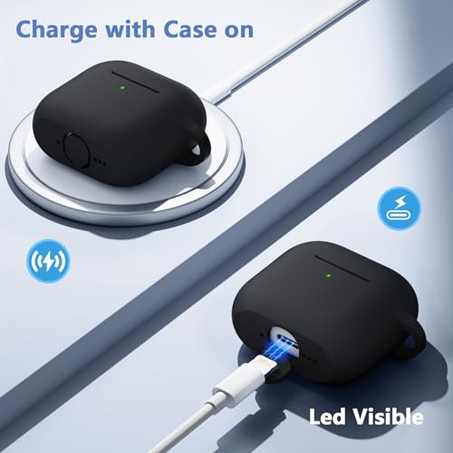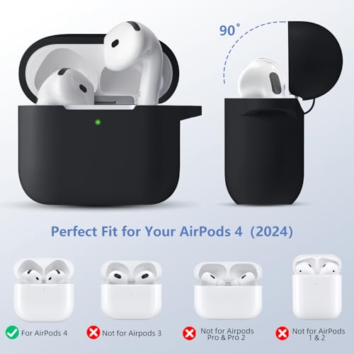 Maledan Case Compatible with AirPods 4 Case Cover 2024, Soft Silicone Full Body Protective Shockproof Case for Apple AirPods 4th Generation Case with Cleaner Kit&Carabiner [LED Visible],Black