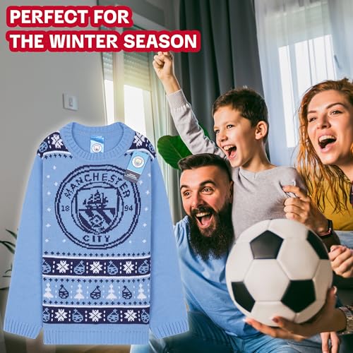 Imagine your child wearing this striking blue jumper adorned with the iconic Manchester City crest at family gatherings or festive outings. It’s not only a fantastic way to show support for their club but also an opportunity for fun and memorable photos with family and friends.