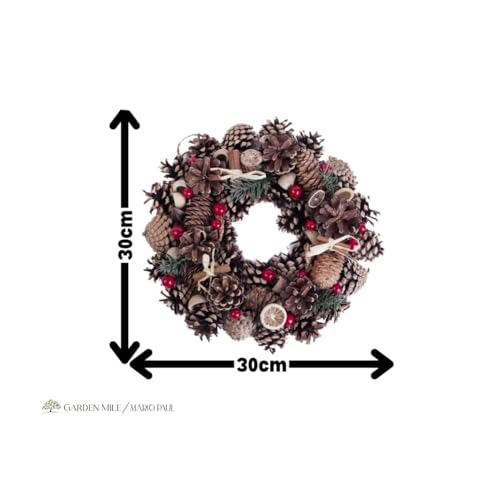This charming wreath combines the rustic essence of pine with vibrant seasonal accents, creating a welcoming atmosphere that is perfect for celebrating Christmas. With its realistic design featuring pine cones, dried orange slices, and red berries, it captures the spirit of the season beautifully. Plus, the aromatic cinnamon sticks infuse your home with a delightful scent that evokes memories of festive gatherings and cosy evenings.
