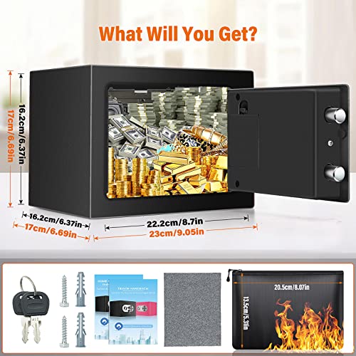 Its compact design makes it easy to hide in a drawer or closet, allowing you to store your valuables discreetly. Plus, with the included fireproof money bag, you can rest assured that your important documents and belongings are safe from fire damage as well.