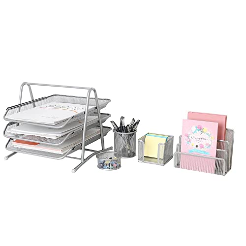 This versatile set includes three horizontal mesh inbox trays, a practical pen holder, a memo pad holder, a letter sorter rack, and a file holder, making it a complete organisational package. The lightweight mesh steel construction not only enhances durability but also adds a modern touch to your office space.
