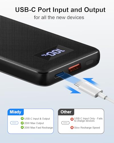 Miady 10000mAh Portable charger, PD 20W USB C Fast Charging Power Bank with Led Display External Battery Pack Compatible with iPhone15/14, iPad, Samsung, Nexus etc