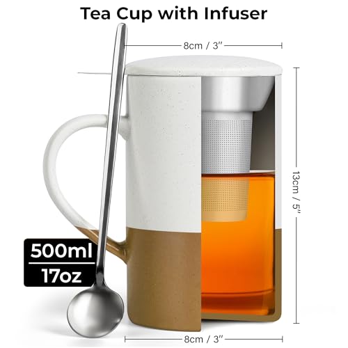 - Discover the ultimate tea experience with the MIAMIO Tea Cup Set, designed for true tea aficionados. This exceptional set includes two generously sized ceramic mugs, each holding 500 ml—perfect for indulging in your favourite loose-leaf teas like aromatic chamomile, robust black tea, or refreshing green tea. With two high-quality infusers, lids, and teaspoons included, you’ll spend less time refilling and more time savouring every sip.