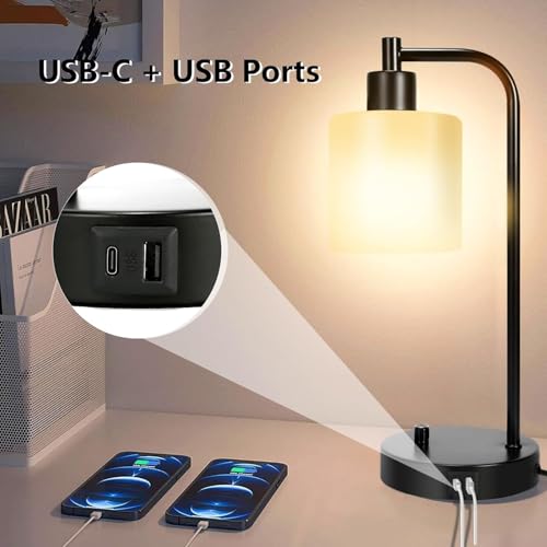 Additionally, the practical USB charging ports ensure that your devices are always ready when you are, eliminating the need for extra chargers cluttering your space. The frosted glass shade diffuses light evenly, creating a warm and inviting atmosphere in any room.